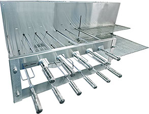 Churrasqueira rotativa com os espetos, conforme modelo correspondente.