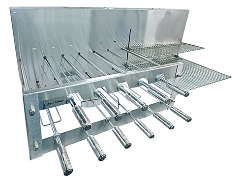 Churrasqueira rotativa com os espetos, conforme modelo correspondente.